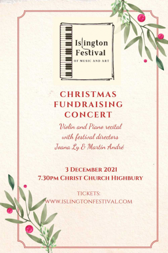 This gala concert will include teasers from next year's programming, as well as many beloved violin and piano show pieces, played in the beautiful Christ Church Highbury, the venue for several of the wonderful concerts of the 2021 Festival.