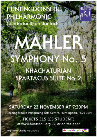 The concert will start at 7.30pm. Tickets £15 adults, £5 students/children, available via website www.huntsphil.org.uk, or on the door from 7pm.