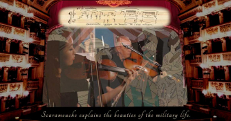 An ensemble of 10 musicians play the work against a very large 4K screen in a yoga studio. The director and conductor is Jonathan Berman.