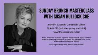 Join Susan Bullock CBE for an entertaining and informative morning as she takes four talented emerging artists through their paces.   And grab a mini brunch on us.