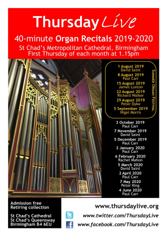 Thursday LIVE at St Chad's Cathedral - 40-minute organ recitals