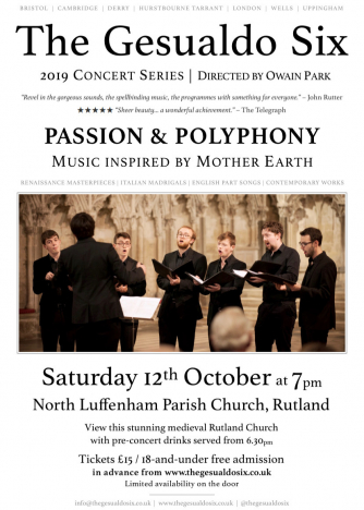 The Gesualdo Six, directed by Owain Park, return to North Luffenham to perform in the historic church of St John the Baptist.