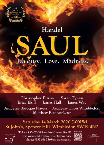 Jealousy, love and madness are at the centre of one of Handel's greatest and most distinctive masterpieces. In a dramatic retelling of the Old Testament story, King Saul descends into madness over his subjects' gratitude to David for slaying Goliath - and the consequences are fatal. With an impressive line-up of world-class soloists, powerful choruses and glorious instrumental music comes a tale of violence and power as Saul's children are forced to choose between loyalty and love, tearing both a family and a nation apart.