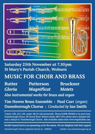 For the opening concert of our 49th season, Danesborough Chorus is joined by organist Paul Carr and the Tim Hawes Brass Ensemble for a performance of John Rutter’s Gloria, one of his most popular choral works.