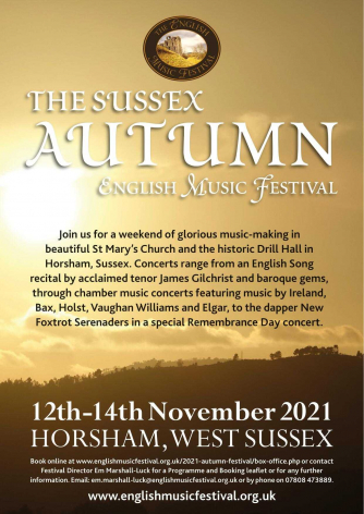 Add to my Calendar 14-11-2021 19:30 14-11-2021 21:30 36 English Music Festival - Autumn Festival 2021: New Foxtrot Serenaders The annual English Music Festival celebrates the brilliance, innovation, beauty and rich musical heritage of Britain with a strong focus on unearthing overlooked or forgotten masterpieces of the late 19th and the early/mid 20th centuries. Concerts run throughout the weekend, and take place in St Mary’s Church, Causeway and in the historic 1920s Drill Hall, just five minutes’ walk away. The Drill Hall, Horsham DD/MM/YYYYDetails