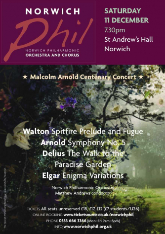 Norwich Philharmonic Orchestras season continues with the Malcolm Arnold Centenary Concert.